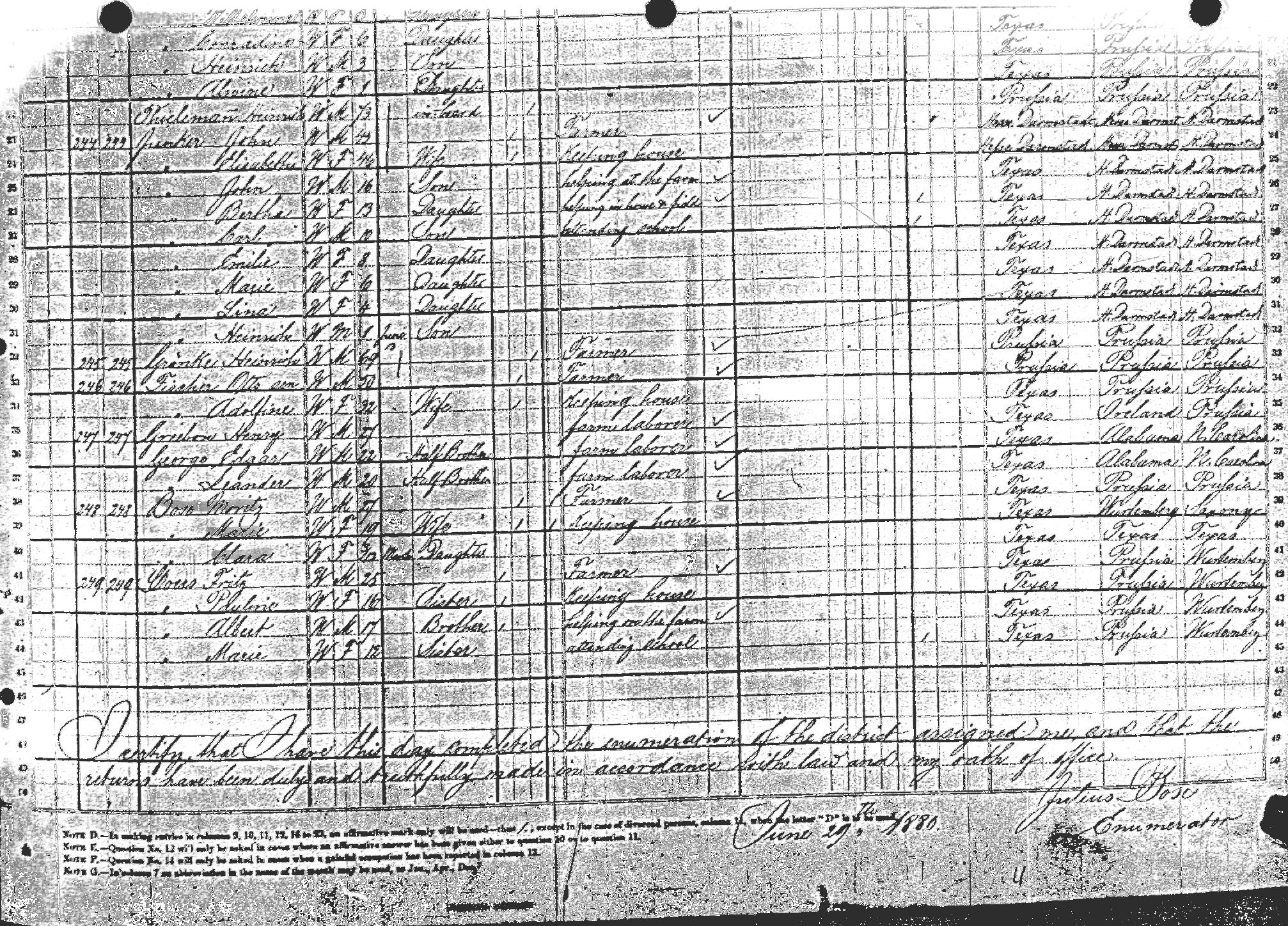 This is a page from the 1880 census. Originally this page was part of a school assignment, and I only copied it because the names of Moritz Bose and his family appear. It wasn't until later that Dad pointed out to me that Julius' signature was at the bottom of the page.