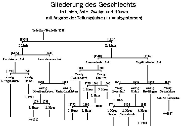 ++ = abgestorben: this indicates the year that the branch or house became "extinct", that is, all descendants in that particular line died.